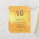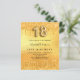 A modern, stylish and glamourous invitation for a 18th birthday party. A faux gold looking background with faux glitter drips, paint dripping look. The name is written with a modern hand lettered style script. Personalise and add your party details. Number 18 is written with a balloon style font, script.