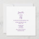 Back: white background and dark Purple coloured letters. Templates for a name and party details.