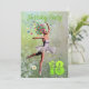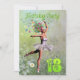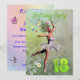 A beautiful ballerina flower fairy dancing on a birthday party invitation. The ballerina is wearing a white tutu, and has trails of flowers coming from her hair. She is dancing through a meadow full of daisies.