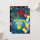 A fun 8th birthday party invitation with happy colours, balloons and fireworks. See the whole range of invitations and cards in my store.