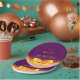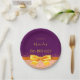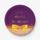 A paper plate for a girly and glamourous 18th birthday party. An elegant feminine purple background with faux rose gold confetti. The text: The name is written with a large golden modern hand lettered style script. Template for name, age 18 and a date.