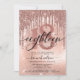 Modern, trendy 18th birthday party invitation. Design features rose gold glitter drips, faux foil and sparkly glitter background, number 18 in trendy rose gold lettering, typography script eighteen and party details.
