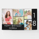 Personalised banner celebrating an 18th Birthday - or customise for any other age! The photo template is set up for you to add 5 of your favourite photos which are displayed in a photo collage of horizontal landscape and vertical portrait formats. The wording simply reads "Happy Birthday [your name]" in modern print typography and "18" is also editable if you would like this design for a different birthday. If you want to customise further or change the background and text colours, click the button to edit using the design tool.