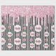Classic slim black and white vertical stripes as background. With girly, feminine and romantic pink roses and pink faux glitter drips, paint dripping look as decoration. Perfect for an elegant 18th birthday party for her. White and black frames with templates for name and age. Age number 18 in pink, name in black. The name is written with a hand lettered style script.