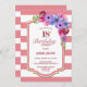 18th Birthday Pink Striped Floral Dinner Party Invitation