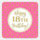 18th Birthday Pink White Gold Dots Square Sticker