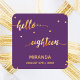 18th birthday purple gold hello 18 script name square sticker