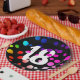 18th Birthday Rainbow Dots on Black Paper Plate