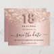 A girly and trendy Save the Date card for a 18th birthday party. Rose gold gradient background decorated with confetti. Personalise and add a date and name/text. The text: Save the Date is written with a large trendy hand lettered style script with swashes. Number 18 with a balloon style font.