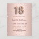 A modern, stylish and glamourous invitation for a 18th birthday party. A faux rose gold metallic looking background with pink diamonds. The name is written with a modern dark rose gold coloured hand lettered style script. Personalise and add your party details. Number 18 is written with a balloon style font, script.