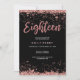A simple yet stylish black invitation with rose gold glitter accents for a 18th birthday party.