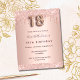 A modern, stylish and glamourous invitation for a girl's 18th birthday party. A faux rose gold metallic looking background with an elegant faux rose gold glitter drip, paint drip look. The name is written with a modern dark rose gold coloured hand lettered style script. Personalise and add your party details. Number 18 is written with a balloon style font, script.