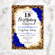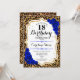 18th Birthday - Royal Blue Gold Leopard Print Invitation