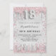 A modern, stylish and glamourous invitation for a girl's 18th birthday party. A faux silver looking background, decorated with pink and faux silver glitter dust. Personalise and add your name nad party details. Number 18 is written with a balloon style font, script.