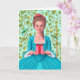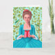 "18th Century Lady Holding a Gift." Greeting Card is inspired by the great art of the 18th century. A woman wearing a cross holds up a birthday present with Chinoiserie wallpaper behind her. This art was done on Photoshop from a drawing I made. I hope you enjoy it!