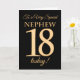 A chic 18th Birthday Card for a 'Very Special Nephew', with a number 18 composed of gold-effect numbers and the word 'Nephew', in gold-effect, on a black background. The inside message, which you can change if you wish, is 'Happy Birthday'