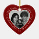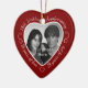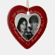 Celebrate a 18th happy year of marriage with a custom photo ornament in a delightful heart shape frame. Simply upload your own photo of the married couple and it will appear in the cutout. The red surround features a white script font and decorations. The words are: 18th Wedding Anniversary - 18 years of love - 18 years of joy. On the back you can personalise this keepsake with your own message and can also add the year or a full date if you prefer. Note: if you like the eighteen year anniversary ornament but have your heart set on a different colour, please contact me.