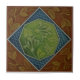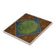 This amber, blue, and green tile is reproduced from an antique original molded tile and features honeysuckle floral vines in two sections and a geometric basketweave design in blue diamond shape surrounding the octagonal frame of the center design. Available in 4.5 and 6 inch tiles as well as other items.