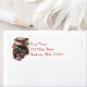 Christmas address labels with an early 1900s image of people gathering in the station and riding an old-fashioned train home for the Christmas holidays. It's not too cold with slight snow in the background and red, white, and green flags for festive holiday decorations.
