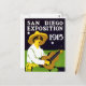 Vintage poster promoting the San Diego California Exhibition of 1915. More often referred to as the Panama - California Exposition, which celebrated the opening of the Panama Canal. The expo ran from March 9, 1915 through January 1, 1917. The poster features a young Californian boy playing a guitar.