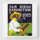 Vintage poster promoting the San Diego California Exhibition of 1915. More often referred to as the Panama - California Exposition, which celebrated the opening of the Panama Canal. The expo ran from March 9, 1915 through January 1, 1917. The poster features a young Californian boy playing a guitar.