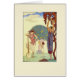 This note card delights with an image by Georges Barbier, 1925, in which two women and a young child work in a garden. The print is titled "La Terre" and glows with