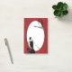 Elegant post-it note pad with 1920s fashion model and flower design on red textured look background.