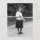 Old photo of pretty girl in 1920s tennis outfit. Vintage sports picture.