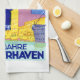 Vintage 1927 poster celebrating the centennial of Bremerhaven, Germany which was founded in 1827. The design depicts a harbour view of the city and the Roter Sand lighthouse in the background.
