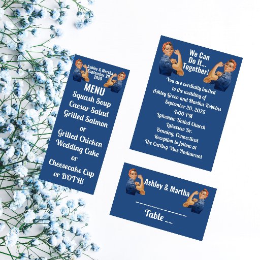 Two Rosies are better than one! This fun, navy blue and white tribute to the Greatest American Decade is perfect for your vintage-inspired wedding.