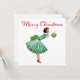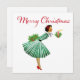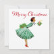 Christmas as it looked like in the 1950's with this retro artwork of a lady all dressed up in hat and full skirted dress in glittery red and green.