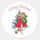 Christmas as it looked like in the 1950's with this retro artwork of a lady all dressed up in hat and full skirted dress in glittery red and green.