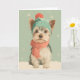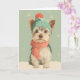 Celebrate the season with this adorable Yorkshire Terrier Christmas card, illustrated in a mid-century modern style inspired by classic 1950s holiday artwork. The sweet Yorkie—small but full of personality, bundled in a cosy knit hat and scarf as gentle snow falls—captures the confident charm and affectionate spirit that make this breed such a beloved companion. Clean lines, soft colours, and painterly simplicity give the design a warm, nostalgic holiday feel.