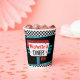 Celebrating your next special birthday in the timeless 1950's Diner theme. Look no further than this black, red and teal with checked pattern featuring a classic diner sign and car with your choice of guy and girl (in 3 hair colors). See my other listings for various hair and skin tone color options for the guy and gal or use the "Click to customize further" option to unhide the other options. This paper cup will be sure to wow your guests and ensure you have a rockin' great birthday party. Visit www.invitecentral.com for digital downloads.