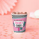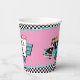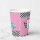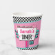 Celebrating your next special birthday in the timeless 1950's Diner theme. Look no further than this pink and teal with checked pattern featuring a classic diner sign and car with your choice of guy and girl (in 3 hair colours). See my other listings for various hair and skin tone colour options for the guy and gal or use the "Click to customise further" option to unhide the other options. This paper cup will be sure to wow your guests and ensure you have a rockin' great birthday party. Visit www.invitecentral.com for digital downloads.