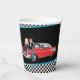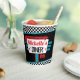 Celebrating your next special birthday in the timeless 1950's Diner theme. Look no further than this black, red and teal with checked pattern featuring a classic diner sign and car with your choice of guy and girl (in 3 hair colors). See my other listings for various hair and skin tone color options for the guy and gal or use the "Click to customize further" option to unhide the other options. This paper cup will be sure to wow your guests and ensure you have a rockin' great birthday party. Visit www.invitecentral.com for digital downloads.