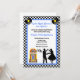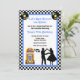 Fun and cute 1950s, 1960s, rock n roll, sock hop theme birthday or shower invitation in blue, black and white chequerboard, featuring a juke box and dancers. Great for any occasion!