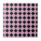 The 50's are here again! A retro pink and black diagonal tile pattern with white "grout lines". Imagine poodle skirts and drive-ins.