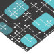 A retro mid century modern style abstract art pattern with lines and rounded squares and rectangles. Colours are teal, turquoise, and light aquamarine on a black background.