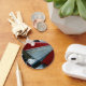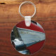 A low and close shot of the side of a classic red and white Chevy Bel Air from the rear, capturing that amazing fin!