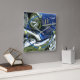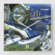 1957 Blue Chevy Custom Car, Yellow Numbers Square Wall Clock