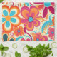Brighten your kitchen with a splash of groovy, flower‑power charm. This retro kitchen towel features a bold, colourful floral pattern of oversized 1960s inspired blooms in orange, pink, teal, yellow, and red, all outlined with playful swirls that make the whole design feel joyful and full of movement. It’s a cheerful accent that instantly livens up your cooking space. Use it for drying dishes, lining a bread basket, adding a pop of colour to your countertop, or simply hanging it as a decorative touch. Perfect for anyone who loves mid‑century vibes, bold colour palettes, or nostalgic décor, this towel makes a fun and functional gift for home cooks, bakers, vintage‑aesthetic fans, or anyone who wants their kitchen to feel a little more vibrant. Whether you’re completing a retro set or adding a single statement piece, this towel brings personality and flower‑power flair to everyday kitchen tasks.