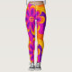 1960s 1970s Style Flowers & Waves Pattern Leggings in purple, pink, orange and yellow.