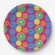 1960s Flower Power Colourful Floral Modern Pattern Paper Plate