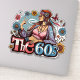 1960s Hippie girl chick peace sign fingers art colour illustration large decal sticker