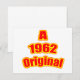 A 1962 Original, With bright red and yellow colours this design is perfect for those who love to stand out in a crowd. Say happy birthday in a special way with this original birth year design.