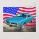 Classic blue 1966 Pontiac Le Mans muscle car photo with American Flag Background.