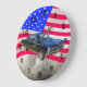 Classic black 1967 Pontiac GTO muscle car photo with American Flag background.