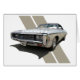 Digitally enhanced image of a frontal 3/4 view of a 1969 Chevrolet Impala with two golden bands behind it.