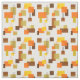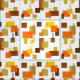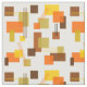 This fabric has a mid-century modern design of rectangles and lines in 1970s colours.